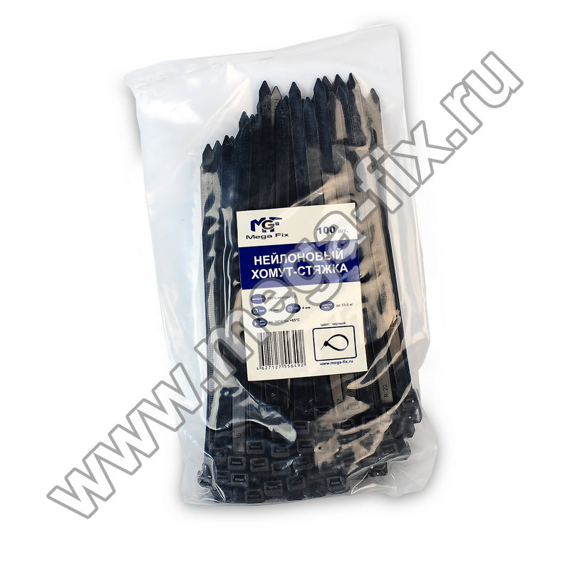 Хомут нейлоновый MGF 7,6х300 мм черного цвета (100 шт./ уп.)